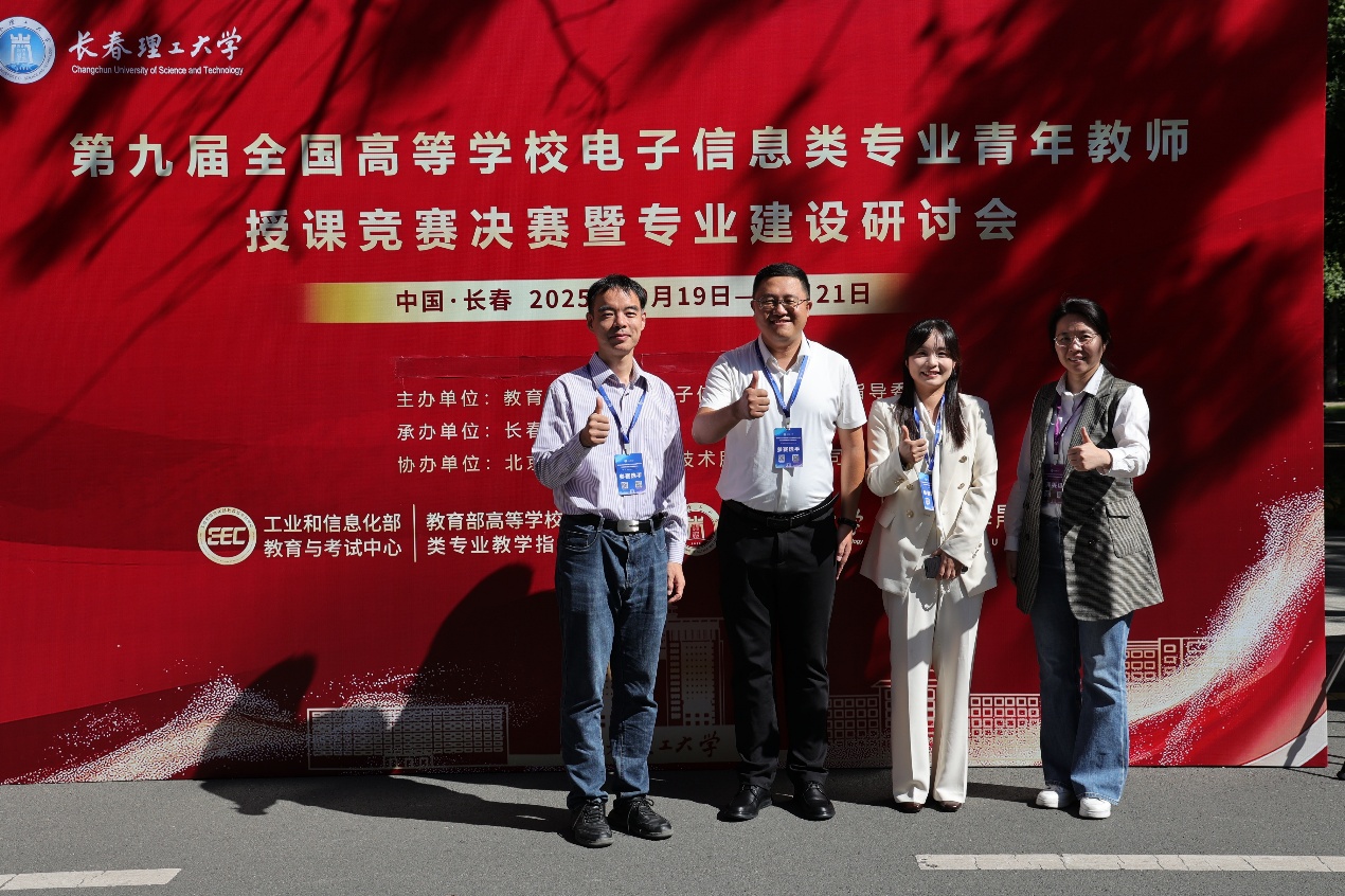 9月21日,第九屆全國高等學(xué)校電子信息類專業(yè)青年教師授課競賽決賽在長春理工大學(xué)落下帷幕,南郵電子與光學(xué)工程學(xué)院、柔性電子(未來技術(shù))學(xué)院(以下簡稱“電光柔學(xué)院”)副院長劉蕾蕾教授帶隊(duì)參賽,學(xué)院青年教師李雙德、魏嫻、陳琳均獲全國決賽二等獎。在預(yù)賽華東賽區(qū)中,李雙德、魏嫻老師獲一等獎,陳琳老師獲二等獎,徐艷卉、薛琛鵬老師獲三等獎。本屆競賽由教育部高等學(xué)校電子信息類專業(yè)教學(xué)指導(dǎo)委員會主辦、長春理工大學(xué)承辦,北京華晟經(jīng)世信息技術(shù)有限公司協(xié)辦,工業(yè)和信息化部教育考試中心指導(dǎo)。賽事分為預(yù)賽、決賽兩個(gè)階段,預(yù)賽覆蓋華東、華西、華南、華北四大賽區(qū),吸引了全國28個(gè)省、直轄市、自治區(qū)的197所高校696名教師參賽。決賽環(huán)節(jié)特邀7位國家級教學(xué)名師、44位省級教學(xué)名師及教育部高等學(xué)校相關(guān)專業(yè)教學(xué)指導(dǎo)委員會委員組成評審專家組,從現(xiàn)場教學(xué)內(nèi)容、教學(xué)組織設(shè)計(jì)、教學(xué)手段應(yīng)用、微課與教學(xué)內(nèi)容融合度、教學(xué)藝術(shù)展現(xiàn)、特色與教學(xué)效果、教案與大綱規(guī)范性等多個(gè)維度進(jìn)行綜合評審打分。經(jīng)過為期兩天的激烈比拼,最終決出“華晟經(jīng)世杯”1名(一等獎第一名)、一等獎57名、二等獎85名、三等獎131名。南郵電光柔學(xué)院高度重視教師教學(xué)能力培